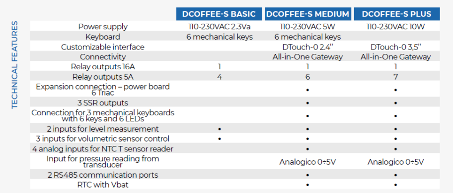 DCoffee-S is the dedicated kit for 2- or 3-group coffee machines with single boiler and it is available in three configurations: