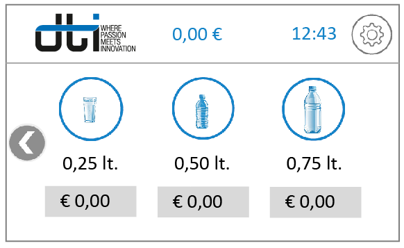 DWater-M è il Kit DTI per frigogasatore a tre acque con dosatura volumetrica e possibilità di erogazione simultanea, configurabile con display touch da 5” o 7”.